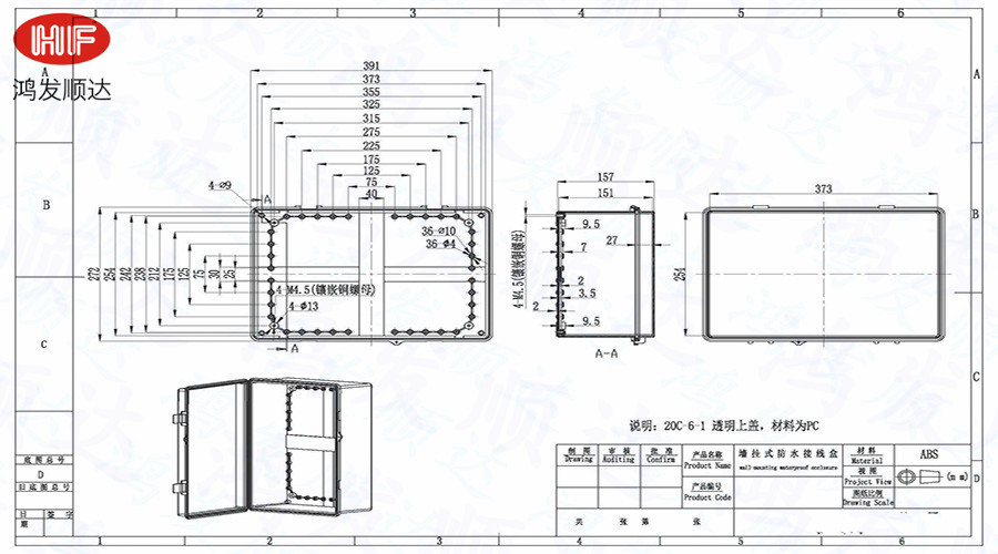 【防水等級】 :產品的防水等級在IP63-IP68之間,一般可達IP65.均采用全新ABS/PC原材料生產,不加入任何再生料。