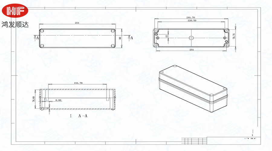 簡要說明:防水盒因地域差異和針對作用范圍不同名稱也不一樣,用于工業(yè)的有防水接線盒、防水儀表盒、防水光伏接線盒等,適用于室內(nèi)、外電氣、通信、消防設(shè)施、鋼鐵冶煉、石油化工、電子、電力、鐵路、建筑工地、礦山、采礦場、機(jī)場、賓館、大型工廠、船舶、碼頭設(shè)備、污水處理設(shè)施、環(huán)境公害設(shè)施等。