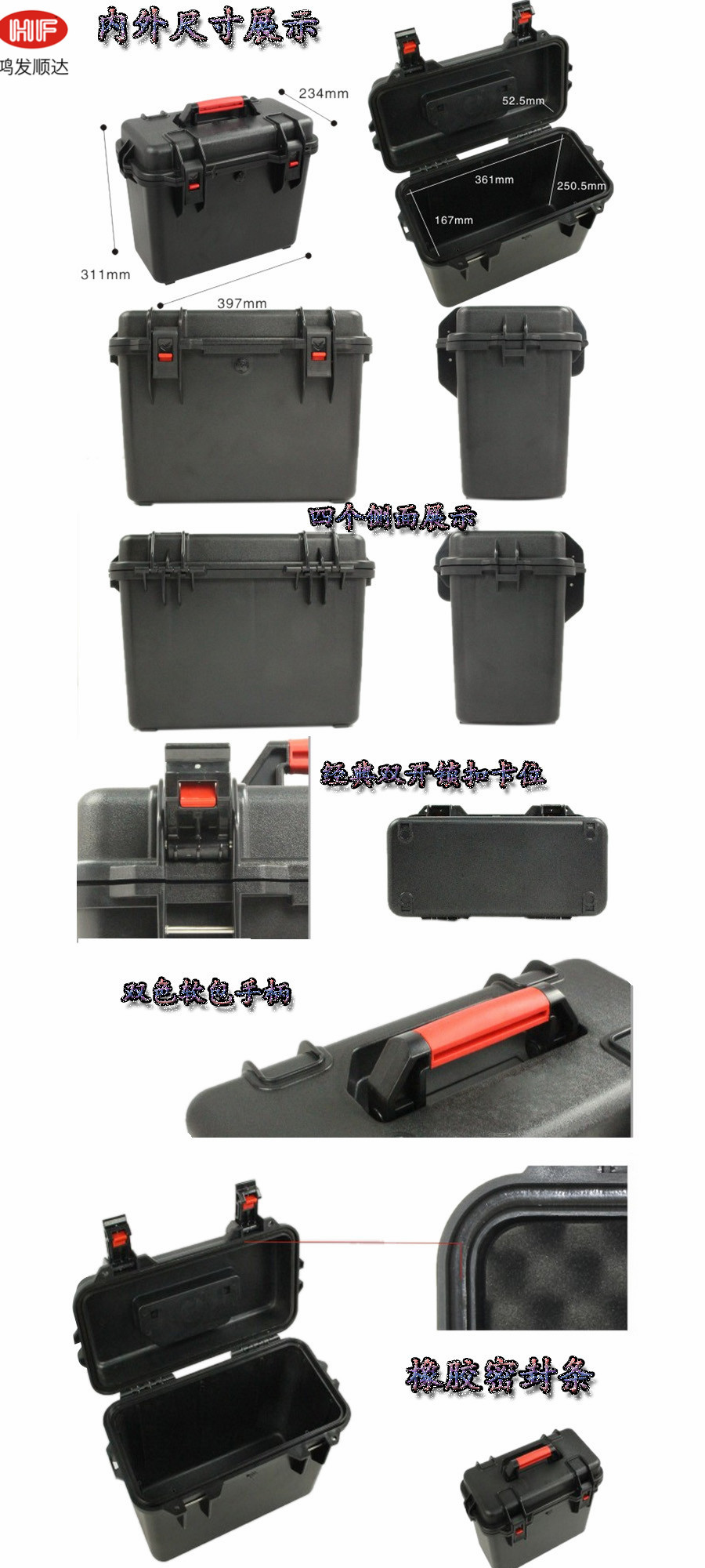 簡(jiǎn)要說明:廣泛用于傳媒、公安、消防、軍隊(duì)、航空、戶外攝影、野外考察、科學(xué)探測(cè)等眾多領(lǐng)域的高端儀器、儀表。具有高強(qiáng)度、高抗壓沖擊、防潮、絕對(duì)密封、防塵、防水等特點(diǎn)。產(chǎn)品材質(zhì):ABS原料,箱體采用高抗沖擊的高分子聚合材料一體注塑成型,密封采用扁型彈性發(fā)泡密封橡膠條,確保防水氣密,所有較軸均采用不銹鋼材質(zhì)。