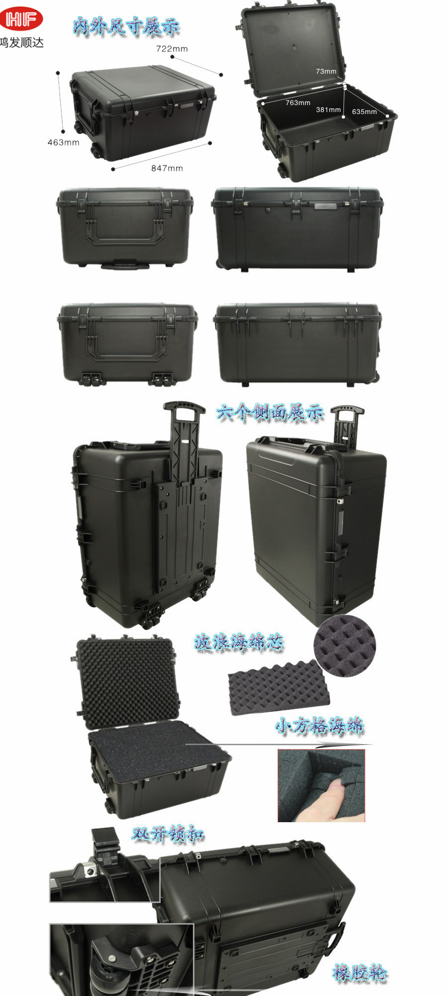 簡(jiǎn)要說明:廣泛用于傳媒、公安、消防、軍隊(duì)、航空、戶外攝影、野外考察、科學(xué)探測(cè)等眾多領(lǐng)域的高端儀器、儀表。具有高強(qiáng)度、高抗壓沖擊、防潮、絕對(duì)密封、防塵、防水等特點(diǎn)。產(chǎn)品材質(zhì):ABS原料,箱體采用高抗沖擊的高分子聚合材料一體注塑成型,密封采用扁型彈性發(fā)泡密封橡膠條,確保防水氣密,所有較軸均采用不銹鋼材質(zhì)。